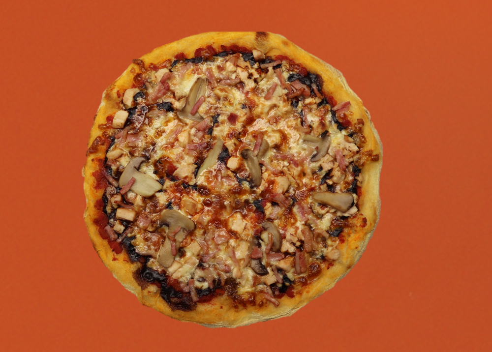 Tomate, mozzarella, calabacín, pimiento rojo, cebolla, berenjena, AOVE y ralladura de parmesano.